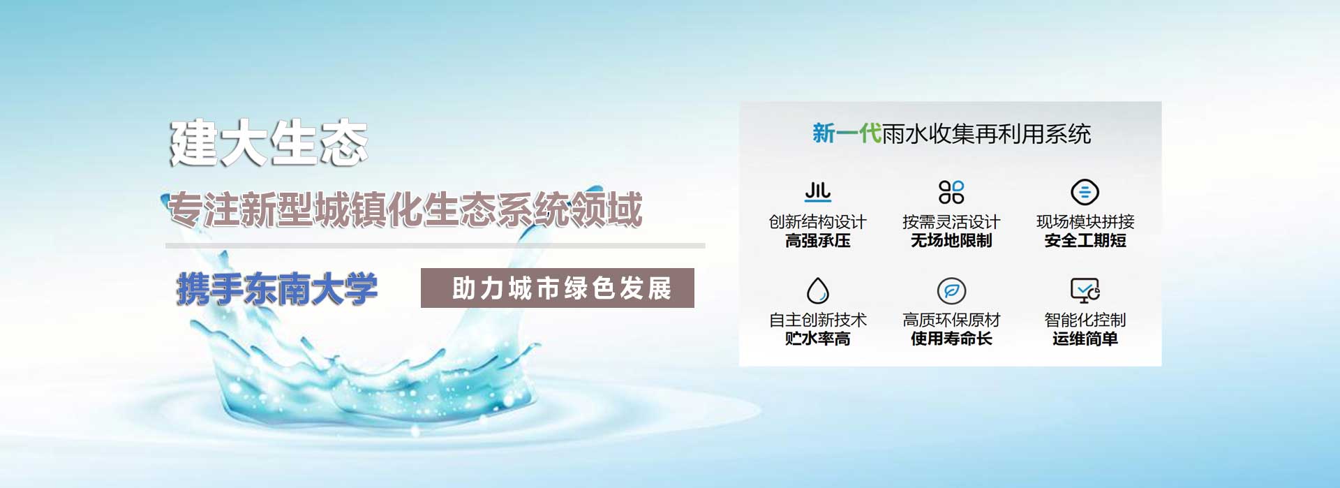 江蘇建大生態(tài)科技有限公司,是一家專(zhuān)注環(huán)保產(chǎn)業(yè)的高新科技企業(yè),主要業(yè)務(wù)范圍包含:海綿城市、雨水收集系統(tǒng)、PDS防護(hù)虹吸排水系統(tǒng)、純水處理設(shè)備、污水處理設(shè)備、一體化預(yù)制泵站、ALC加氣板等。公司研發(fā)團(tuán)隊(duì)與”東南大學(xué)”合作多年,具備前瞻性產(chǎn)業(yè)以及產(chǎn)品的設(shè)計(jì)與開(kāi)發(fā)能力。我公司一直以穩(wěn)定至優(yōu)的產(chǎn)品和良好的企業(yè)信譽(yù),取得了廣大客戶(hù)的信任。公司所有產(chǎn)品均通過(guò)內(nèi)部質(zhì)量標(biāo)準(zhǔn),強(qiáng)大的生產(chǎn)能力和高精的檢測(cè)手段,以客戶(hù)滿(mǎn)意為中心,不斷追求創(chuàng)新!